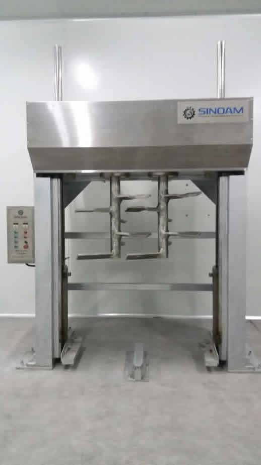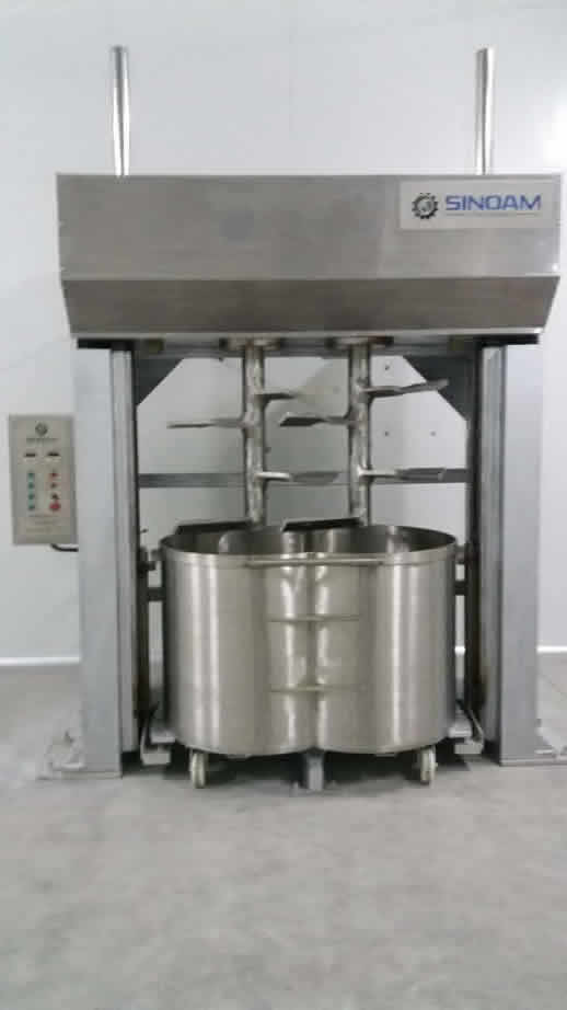 立式攪拌機采用不銹鋼攪拌槳,變頻調速,可根據不同的工藝要求設定攪拌速度。配備一定數量的分離式粉桶,可實現連續攪拌,面團儲存轉運方便,尤其適用于需要二次或多次發酵和攪拌的工藝。