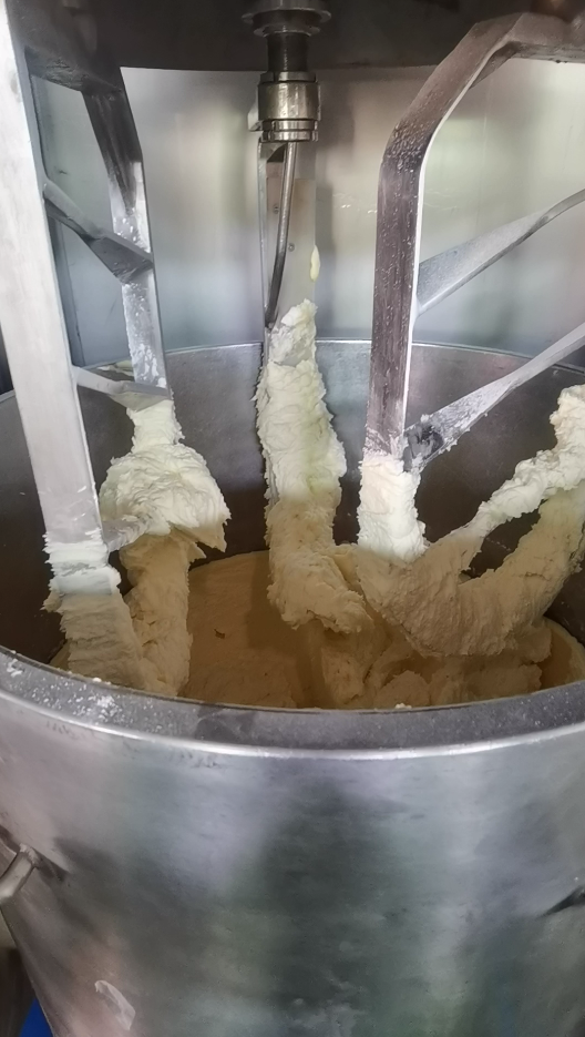 該機主要用于夾心餅干生產過程中夾心奶油的攪拌,以及曲奇餅干生產過程中黃油與糖粉的攪拌。采用自動控制系統,利用PLC編程可設置多種攪拌工藝,攪拌桶于機體分離,方便清潔衛生。并可配備多種不同結構形狀的攪拌槳,以攪拌各種不同的漿料。