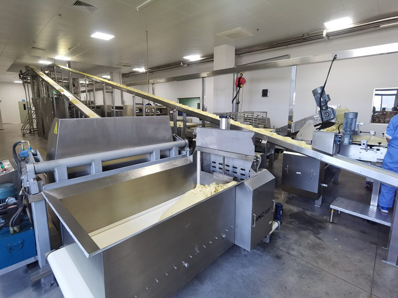 面皮在成型的后, 余料通過該設備回收到喂料機重復使用 采用背掛式電機減速機,線速度變頻可調,氣動張緊。 304不銹鋼機架輸送帶方便更換,動力膠輥拆卸容易